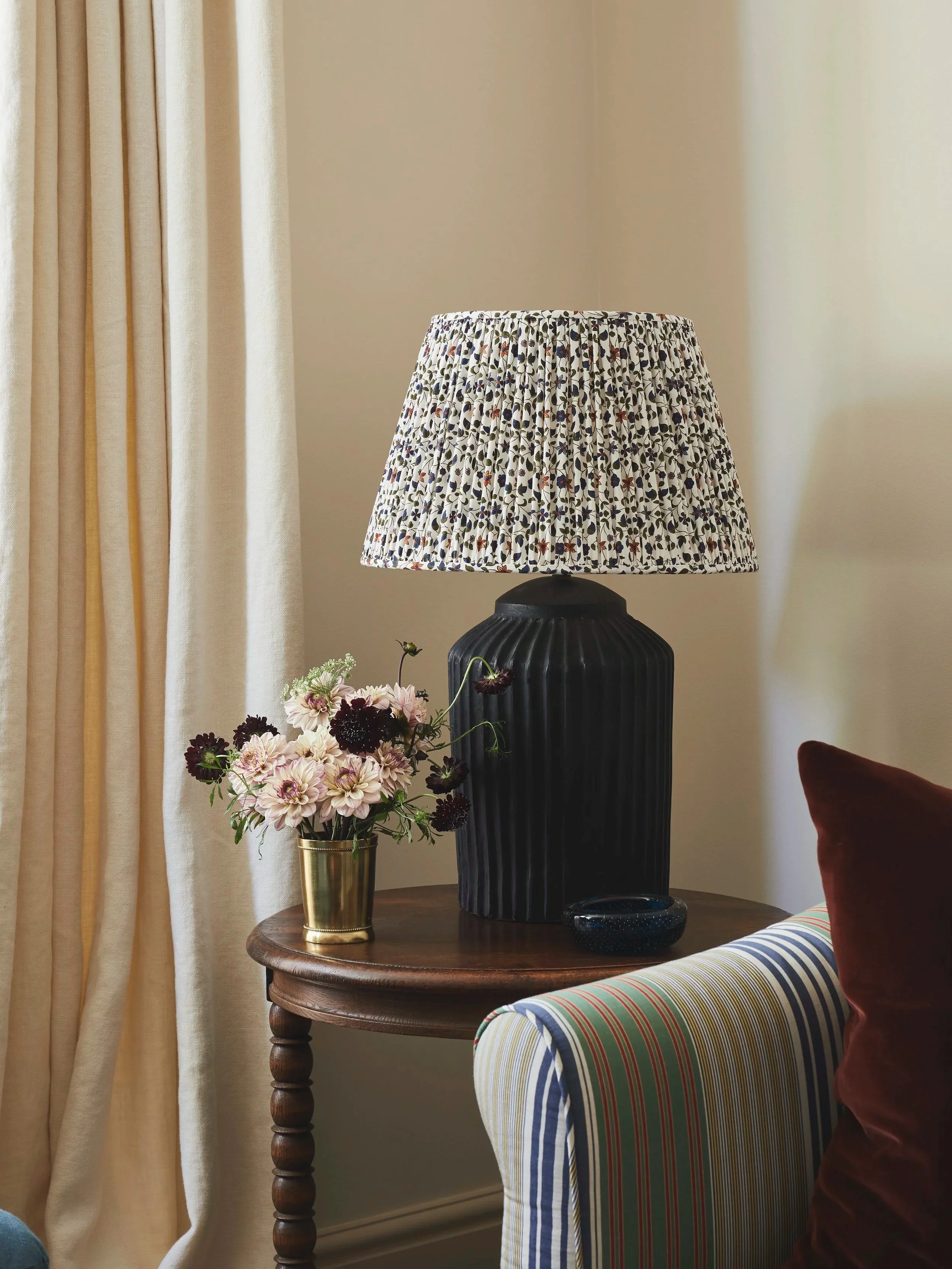 A reclaimed lamp found in a skip base marries with a handmade, gathered shade.
